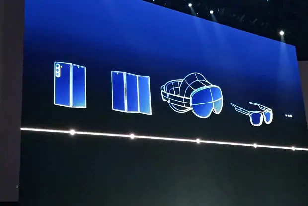 На одном из слайдов с дорожной картой Samsung мелькнуло устройство, состоящее из трёх частей. Судя по всему, это складной смартфон нового поколения. Помимо него, компания намекнула на разработку гарнитуры виртуальной и дополненной реальности, а также умных очков. Однако точные сроки выхода всех этих гаджетов остались за кадром. Инсайдеры предполагают, что тройной смартфон и носимые устройства можно ожидать до конца года.